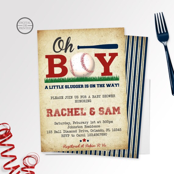 Browse from our wide selection of fully customizable shower invitations or create your own today! Fun, sweet and extra special, these baseball shower invitations will set the stage in perfect style for a vintage baseball themed shower. These are really darling though at any baby shower from mud pie on baby sakes} {little slugger sweet caramel corn and water bottles. Baseball baby shower invitation, printable file, oh boy, little slugger, baby shower invite, mvp, all star, little league, boy baby shower, specialmomentsbymeg $ 12.99 free shipping Buy our little slugger baseball themed baby sprinkle baby shower invitations for boys, 20 5x7 fill in cards with twenty white envelopes by amandacreation:
