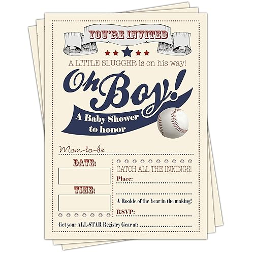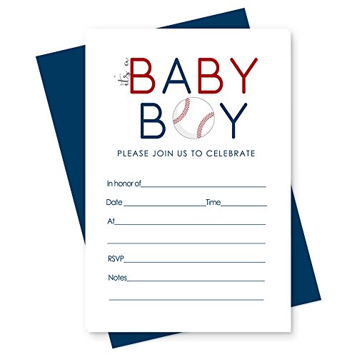 Baseball baby shower invitations and blue envelopes (pack of 15) little slugger boys sports party classic fill in style invites by paper clever party 4.8 out of 5 stars 5 ratings complete set: